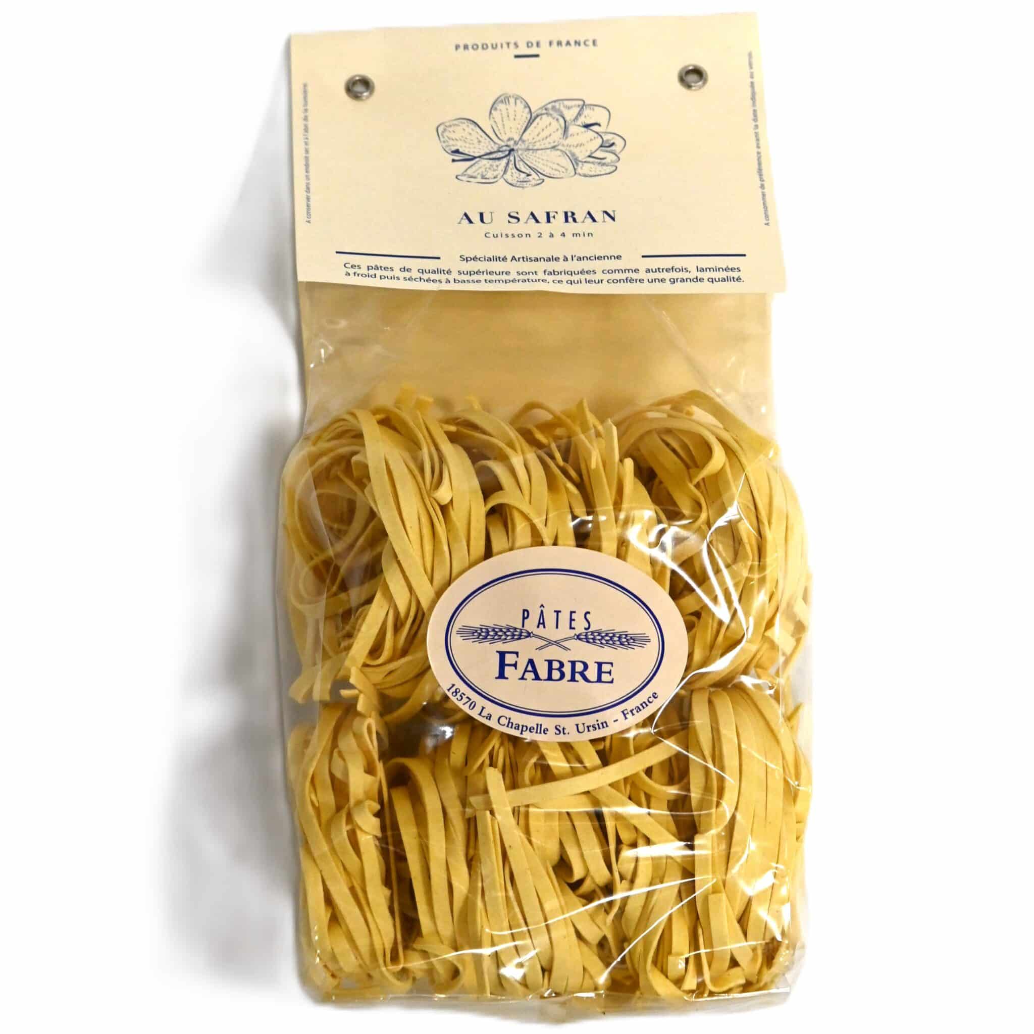 Safranpasta fra Pâtes Fabre – Håndlavet pasta med ægte safran, der giver en gylden farve og delikat, aromatisk smag. Perfekt til fisk, skaldyr og lette saucer.